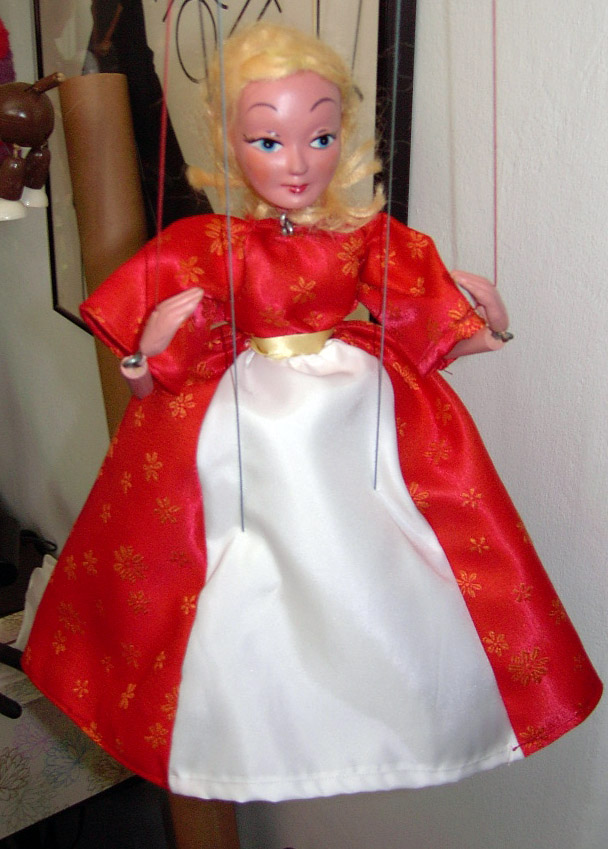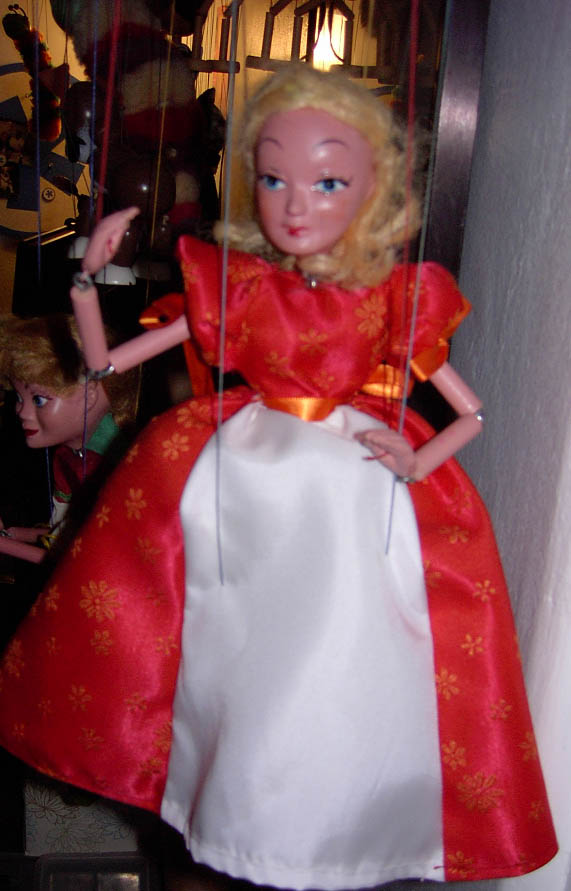 Now let me start off by saying I am not a purist and if you are that is great. As someone had put it on one of the discussion forums. Bob Pelham would be very proud to know that someone has taken to improving his design. So that is the way I feel about some things. Why not try something different and instead of the same pink and white dress. The Cinderella dress that i created is a brilliant red Chinese silk with small orange flowers embroidered on it. I used a orange satin ribbon to tie the waist and as an improvement on the original I used ribbon to create pleats in the sleeves to give it the ballooning look. Then tied the ribbon into small bows. It looks very nice.